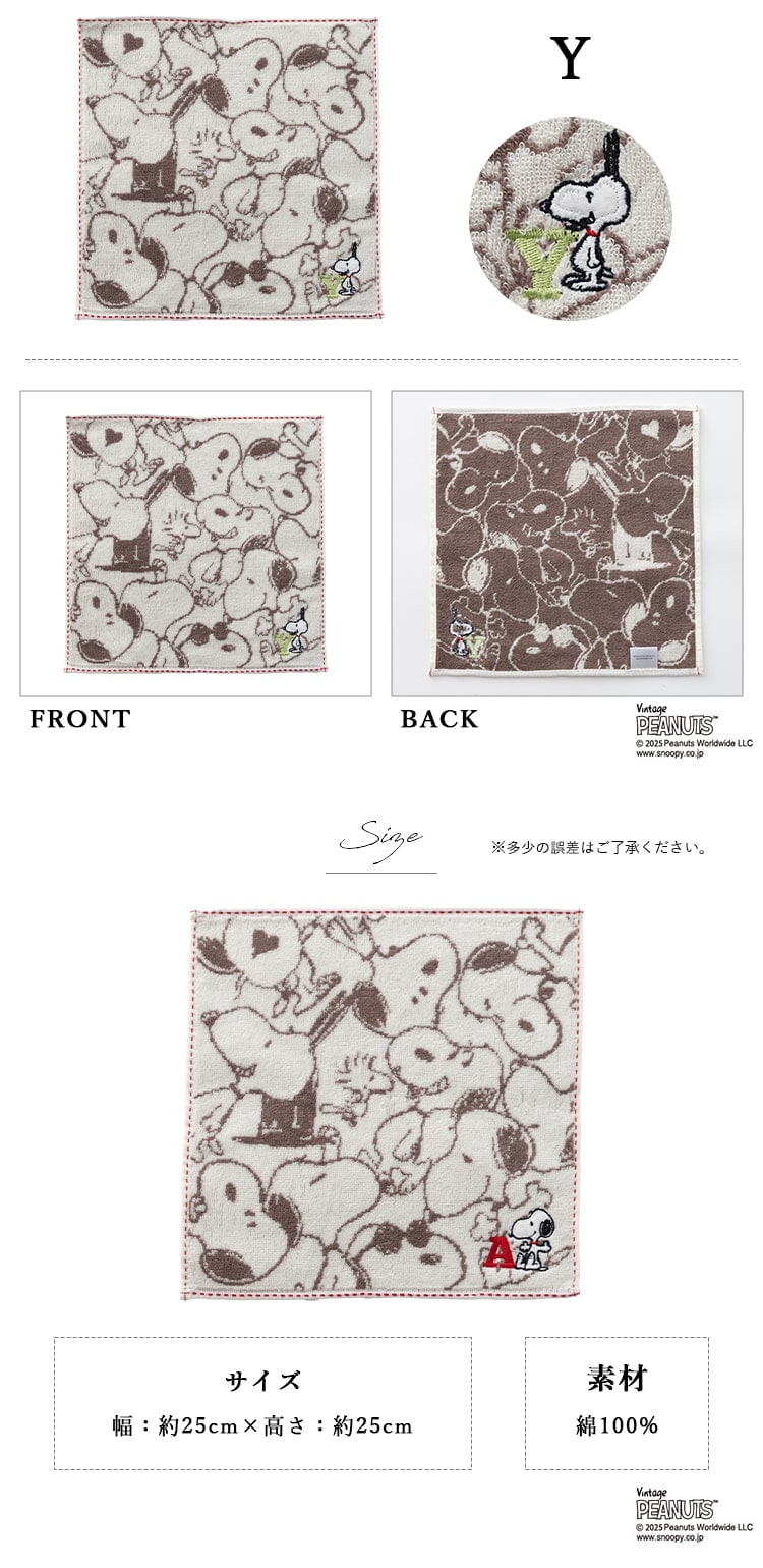 タオルハンカチ ブランド スヌーピー キャラクター イニシャル 刺繍 レディース メンズ ギフト プレゼント 綿100 コットン かわいい おしゃれ 25cmx25cm