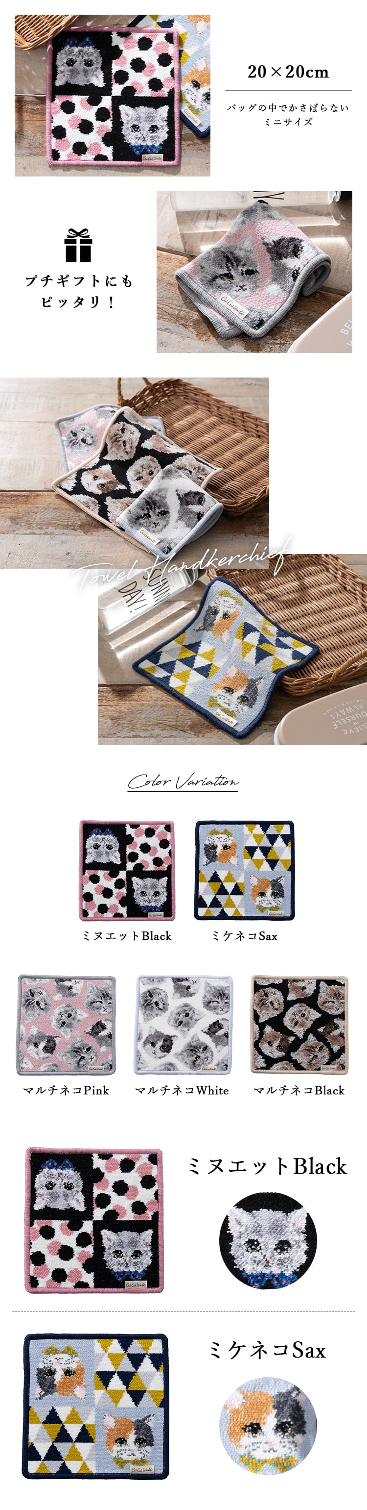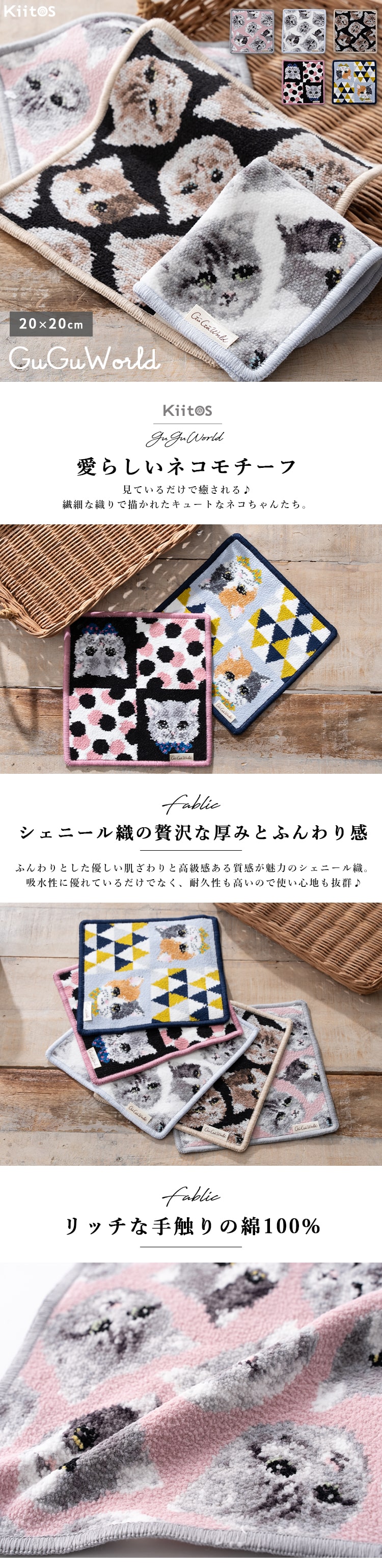 ハンカチ レディース ブランド シェニール織 グーグーワールド GuGu World タオルハンカチ 綿100 コットン 20cm ギフト プレゼント ネコ 猫 かわいい おしゃれ