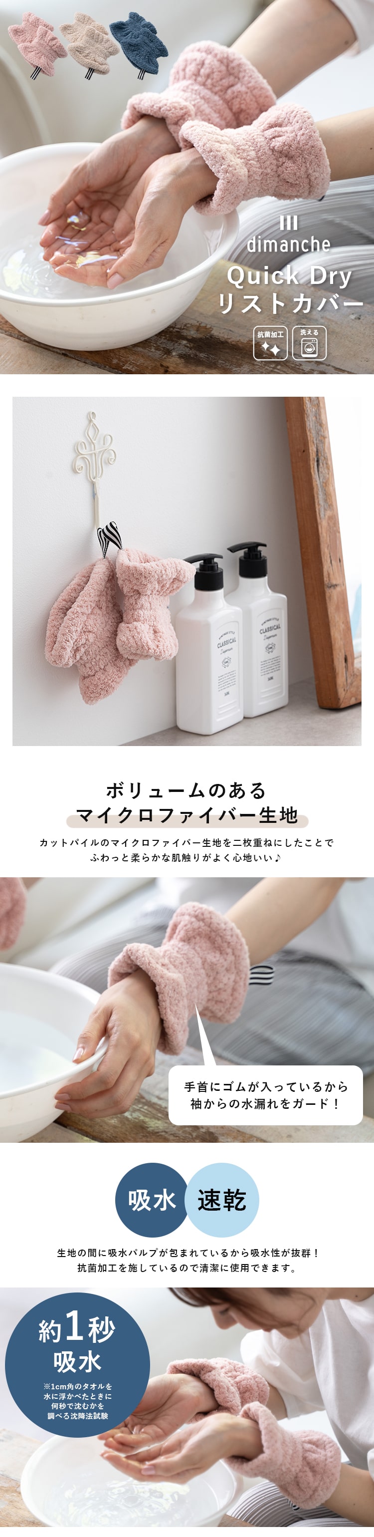 リストバンド 洗顔 1秒吸水 マイクロファイバー 抗菌 タオル地 速乾 ブランド dimanche 手首バンド ウォッシュバンド 袖濡れ防止 ふわふわ 柔らかい アームバンド おしゃれ かわいい プレゼント ギフト