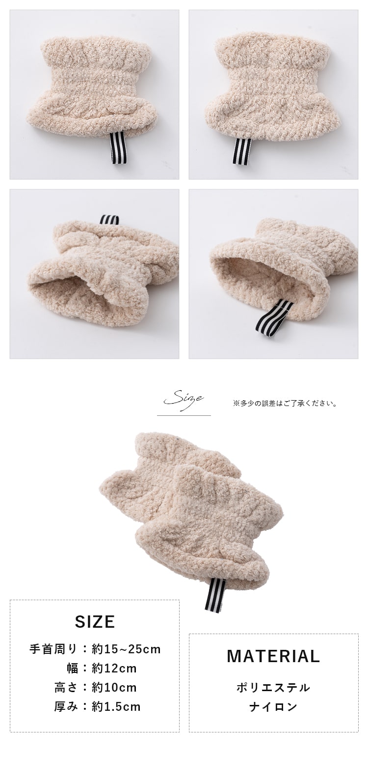 カットパイル生地でふわっと肌触りの良い手首バンド。