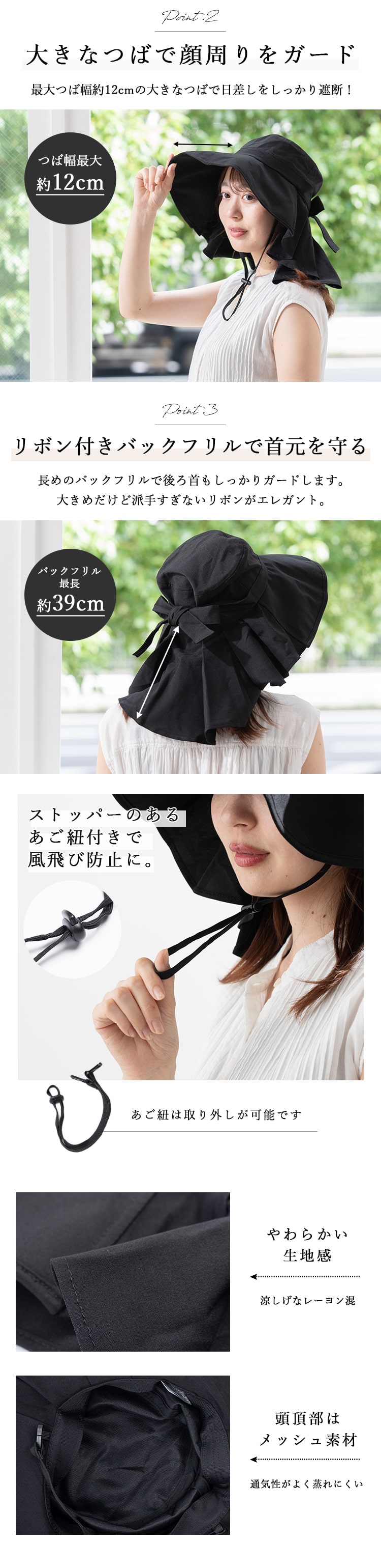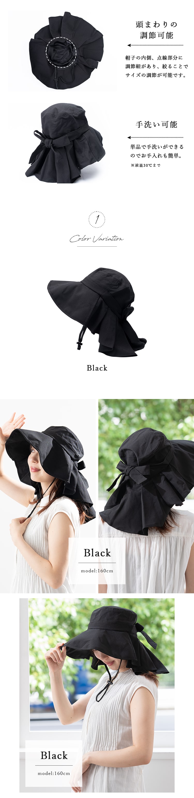 帽子 レディース ハット つば広 リボン uvカット 日焼け防止 遮光100% 美々帽子 首 日除け たれつき 洗える サイズ調整可 upf50+ 紫外線対策 上品 大人 春 夏 秋 プレゼント ギフト