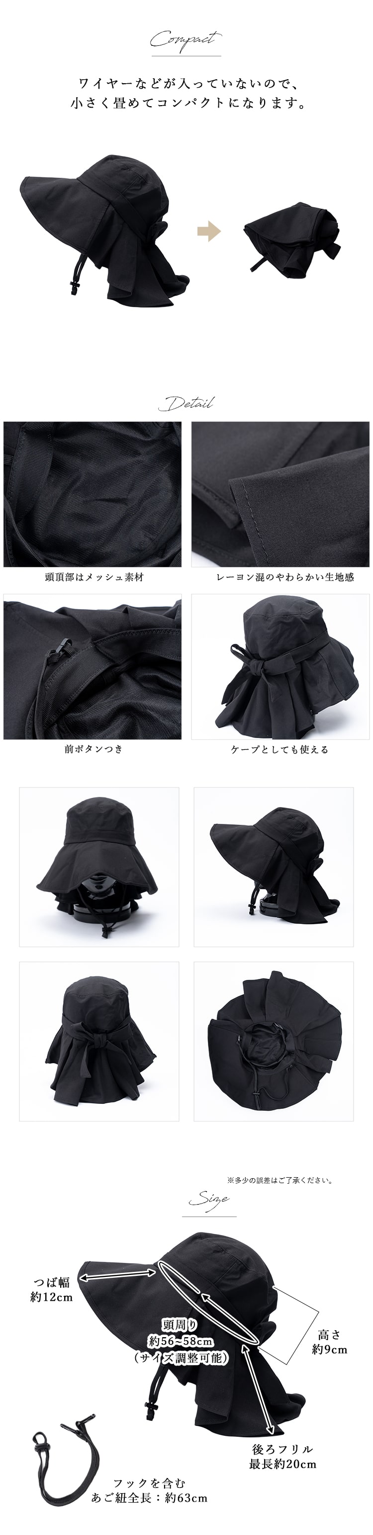 後ろは長めのフリルになっており、後ろ首までしっかりガードします!