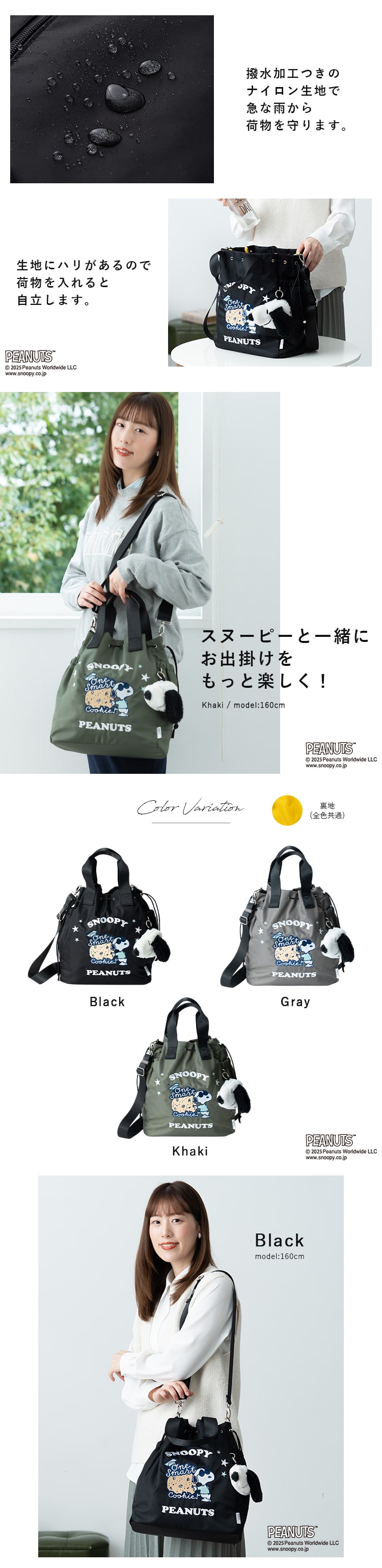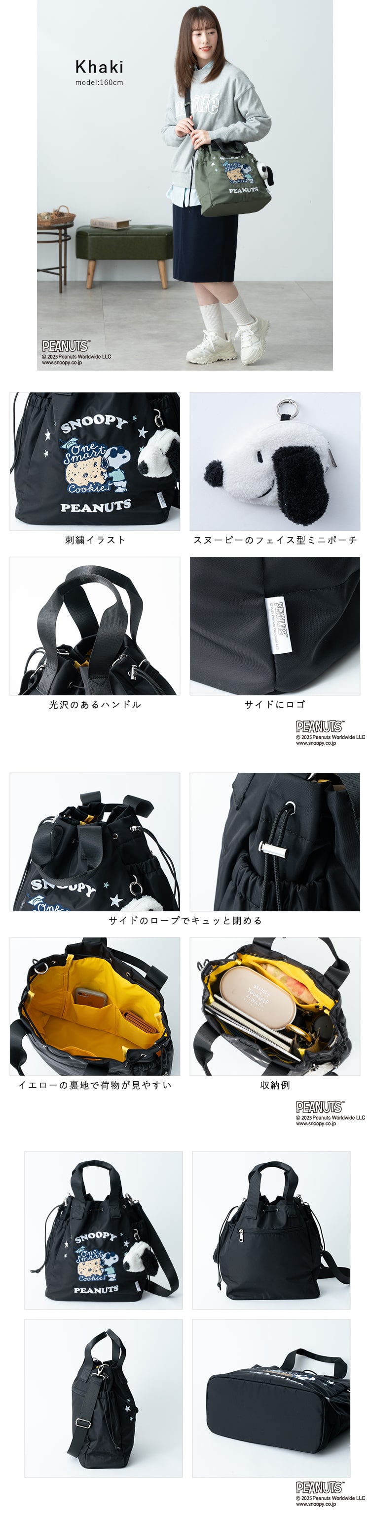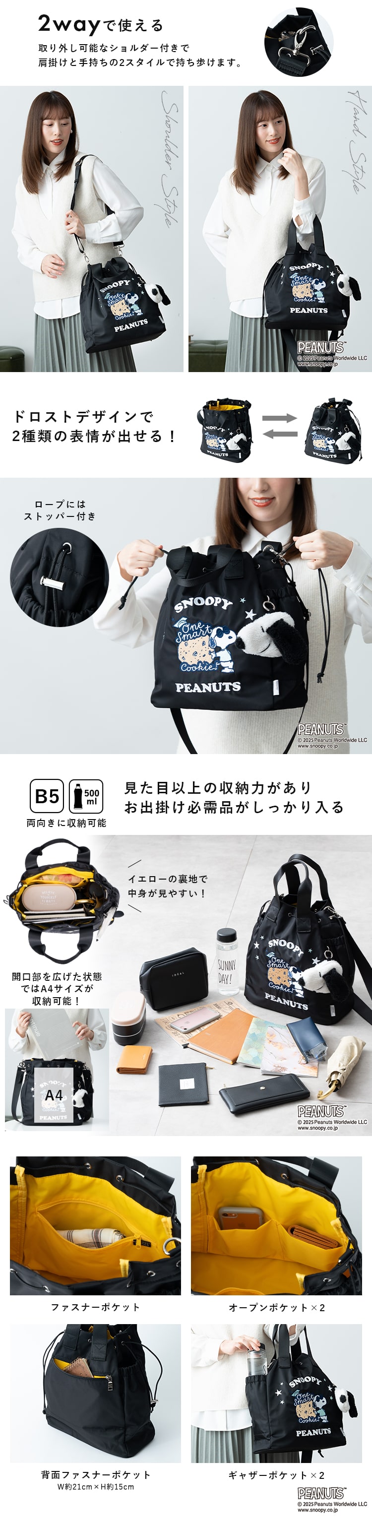 Y'SACCSから、スヌーピーデザインの2way巾着トートバッグ。
