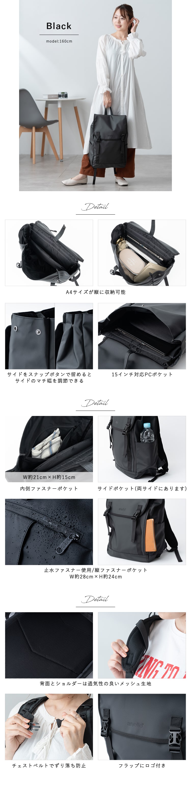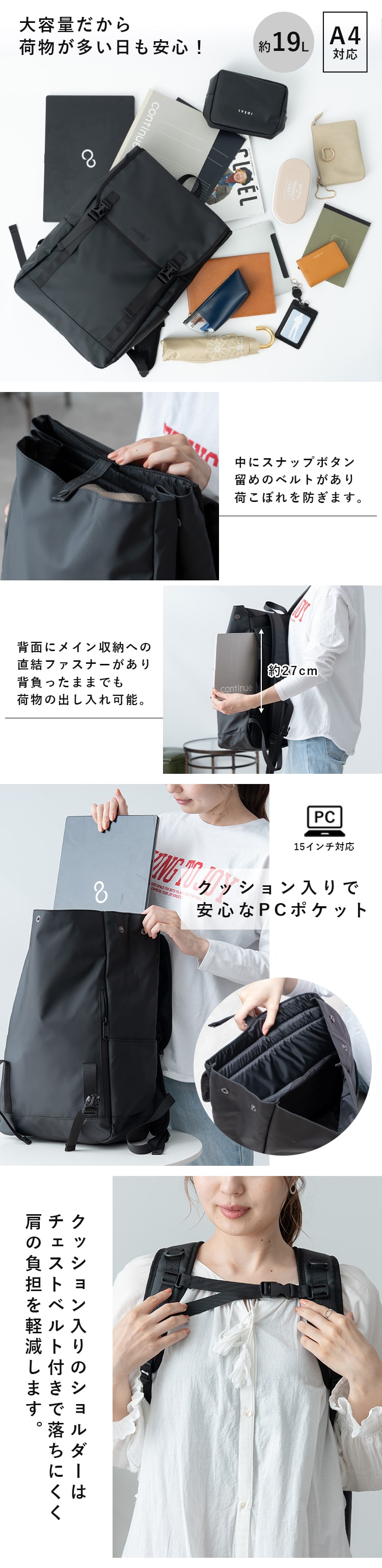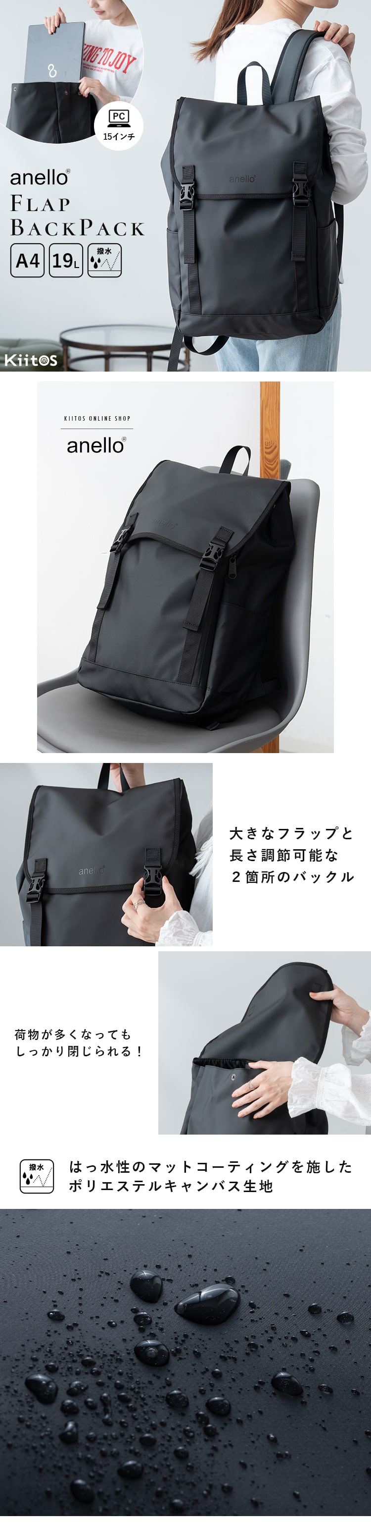 リュック レディース メンズ 通勤 通学 ブランド anello アネロ 大容量 撥水 pc 15インチ フラップ ビジネス 仕事 学生 丈夫 アウトドア 背面ファスナー 19l 軽量 カジュアル シンプル おしゃれ 大人 かわいい 黒 シンプル 旅行 プレゼント ギフト