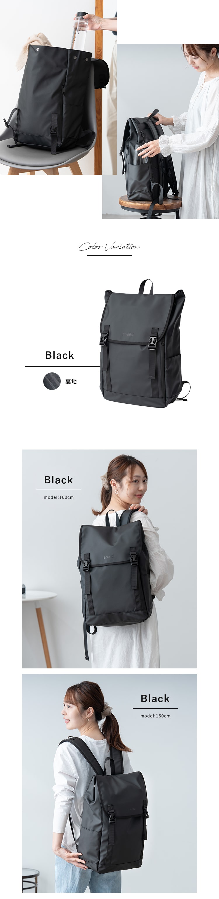 シンプルかつ洗練された直線的でスマートな長方形ボディのanelloのリュック。