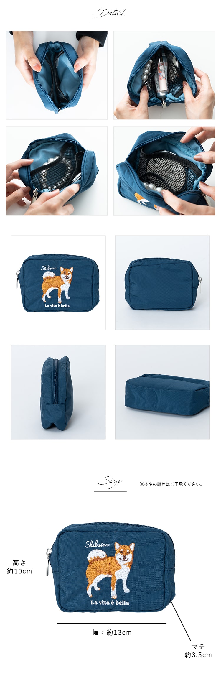ポーチ 小物入れ 刺繍 アニマル 動物 かわいい おしゃれ 自立 仕切り 大きめ 化粧ポーチ コスメポーチ マチあり スクエア 長方形 旅行 プレゼント ギフト