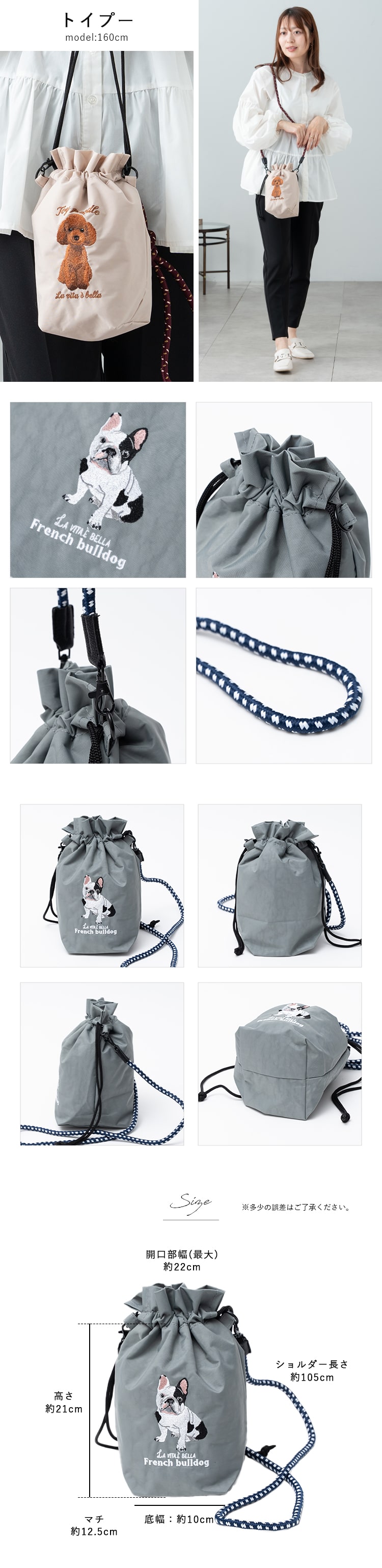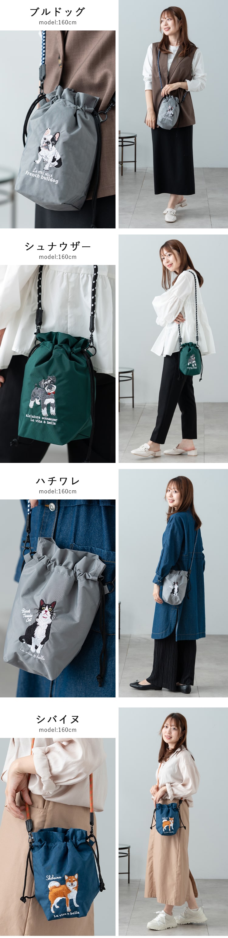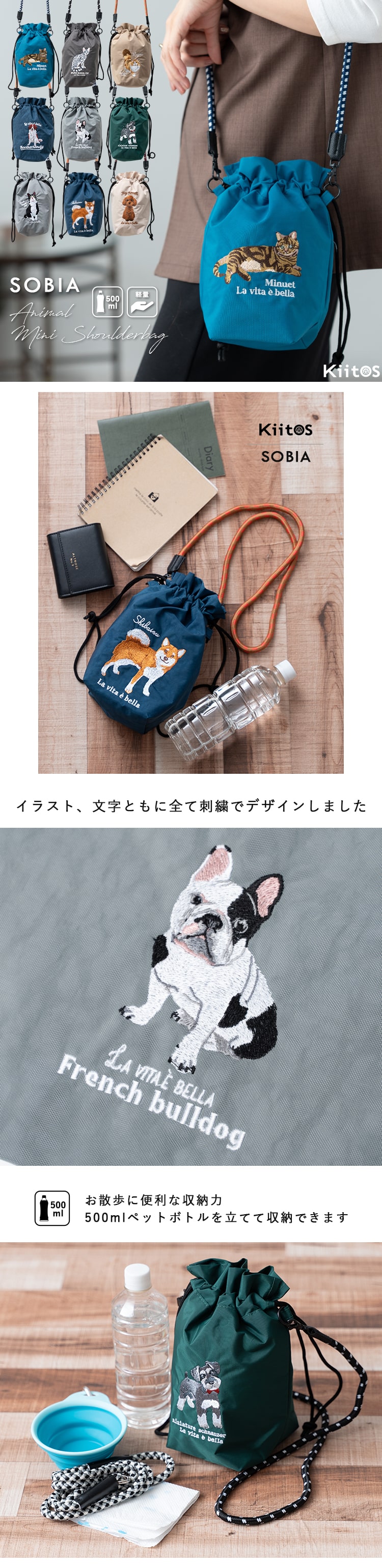 ショルダーバッグ レディース 小さめ 動物 アニマル 刺繍 巾着 斜め掛け おしゃれ 大人 かわいい 犬 散歩バッグ ペットボトル 軽量 ナイロン 通勤 通学 学生 仕事 プレゼント ギフト