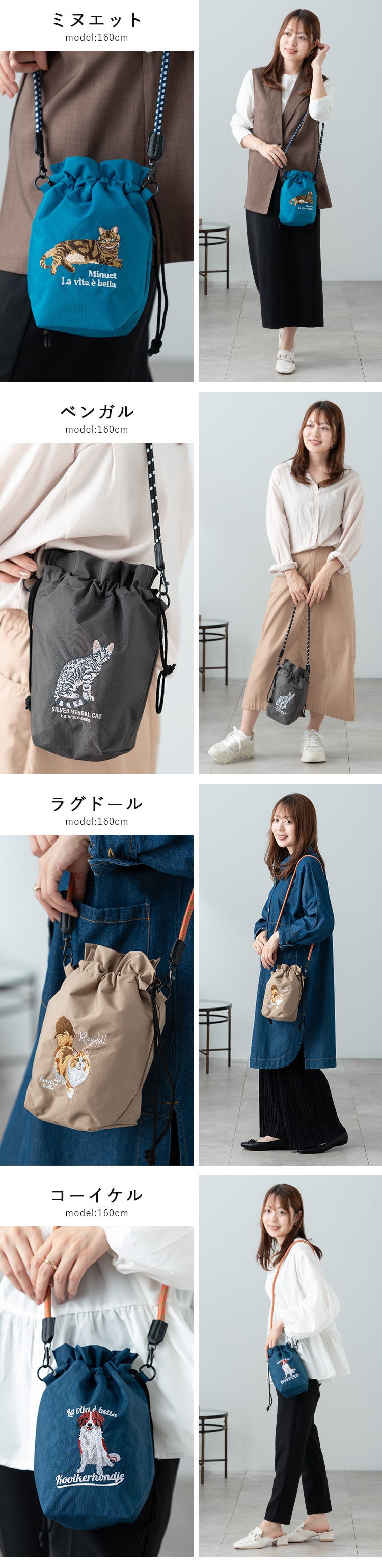 お気に入りのアニマルで選んでも、カラーで選んでも楽しいミニショルダーバッグです。