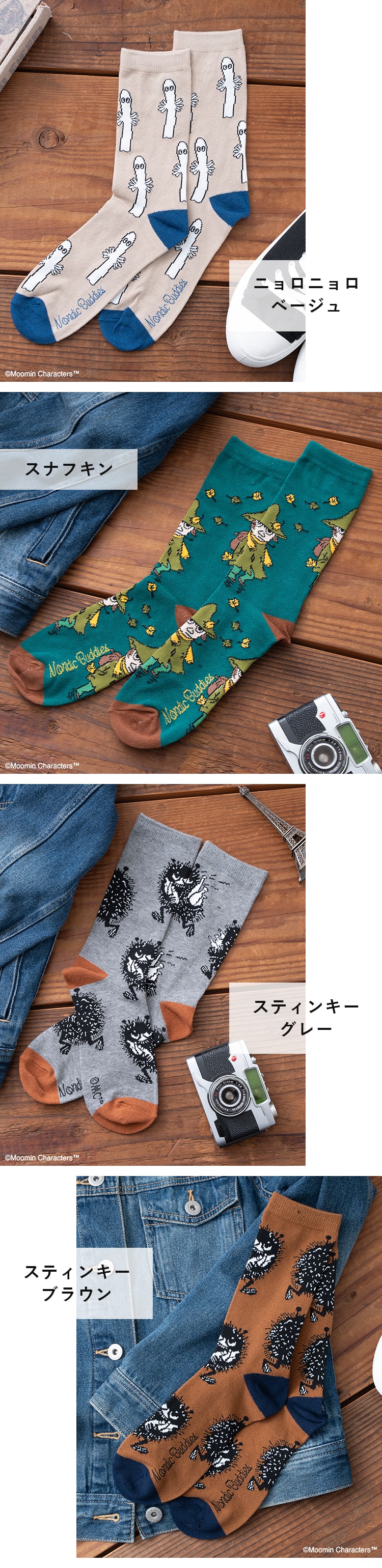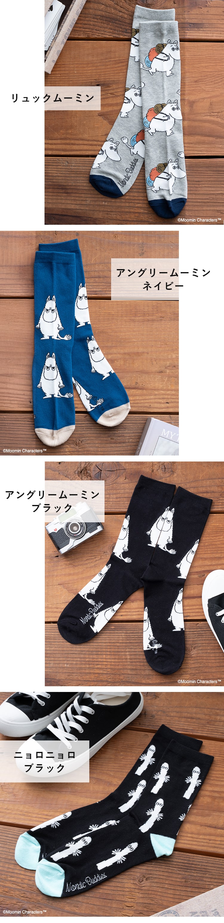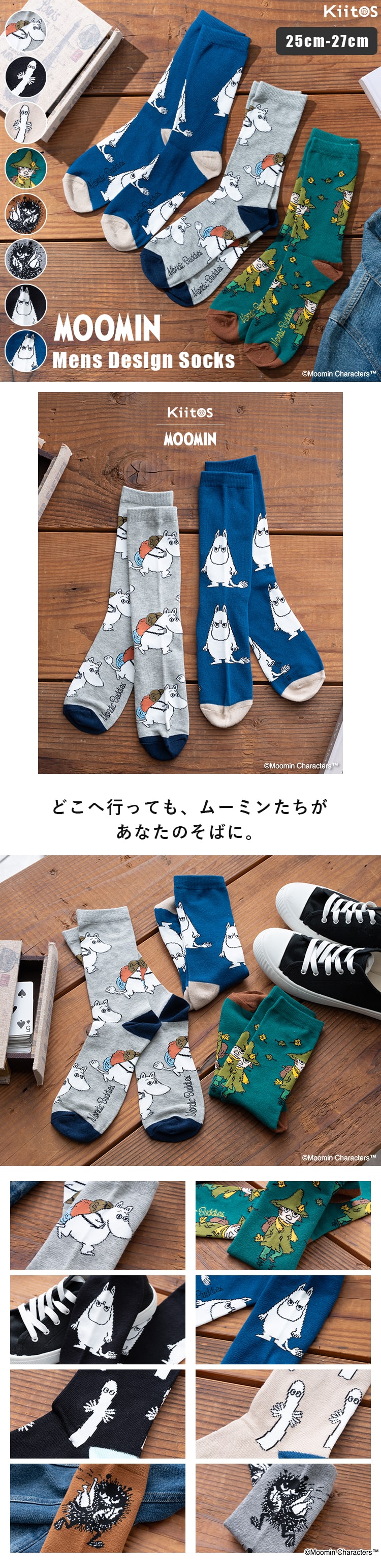 靴下 メンズ ソックス ムーミン MOOMIN クルー丈 プレゼント ギフト キャラクター 綿 コットン ブランド ロング ゴルフ おしゃれ 黒 春 夏 秋 冬