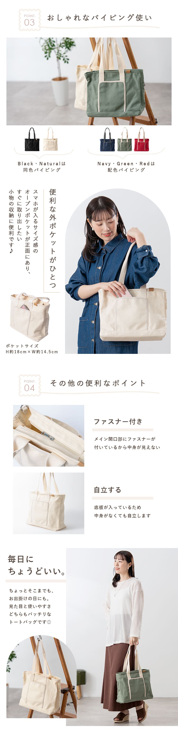 ざっくりキャンバスがナチュラルで気取らないデザインのトートバッグ。