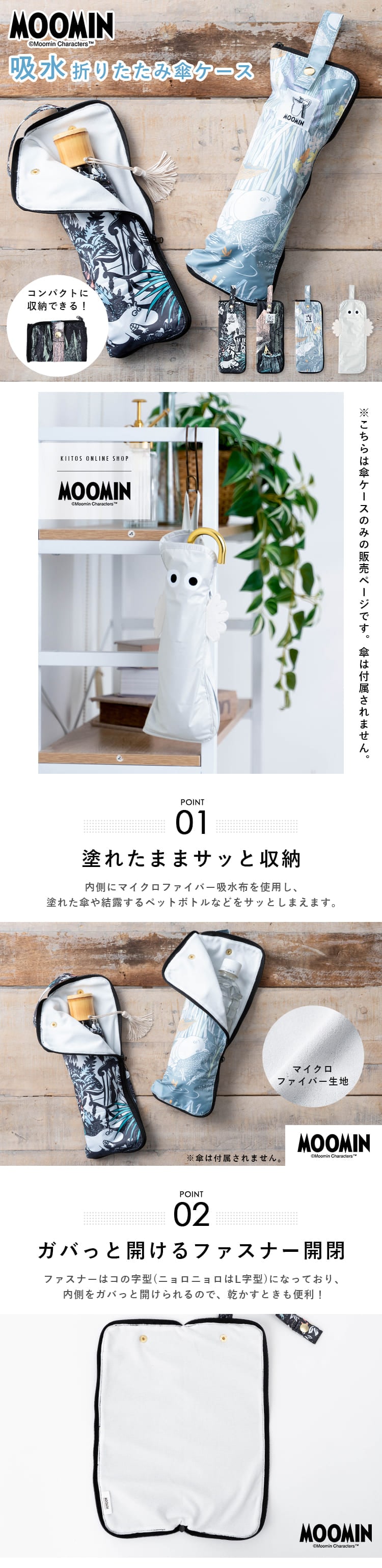 傘カバー 傘ケース ムーミン 折りたたみ 吸水 マイクロファイバー かわいい おしゃれ キャラクター ニョロニョロ 大人 防水 撥水 ファスナー コンパクト 持ち運び 通勤 電車 車 濡れない 水筒カバー MOOMIN プレゼント ギフト
