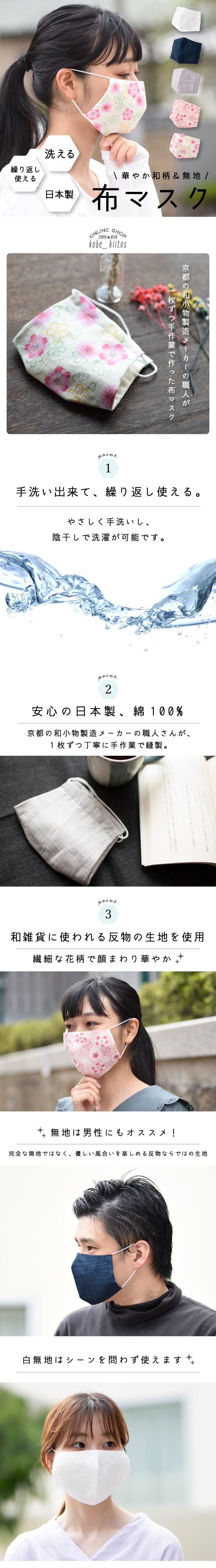 布マスク 和柄 日本製 洗える 大人 長さ調整可 かわいい おしゃれ 着物 反物 花 柄 無地 ファッションマスク コットン 大きめ 綿布カネキン 浴衣 春 夏 涼しい ギフト プレゼント メール便送料無料