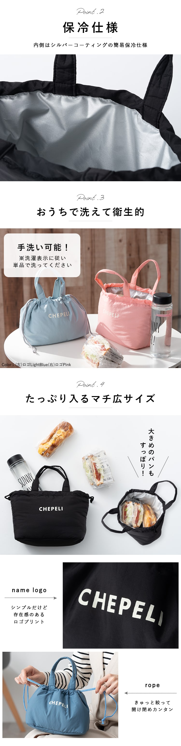 ころんと丸いシルエットが可愛い保冷巾着バッグ。