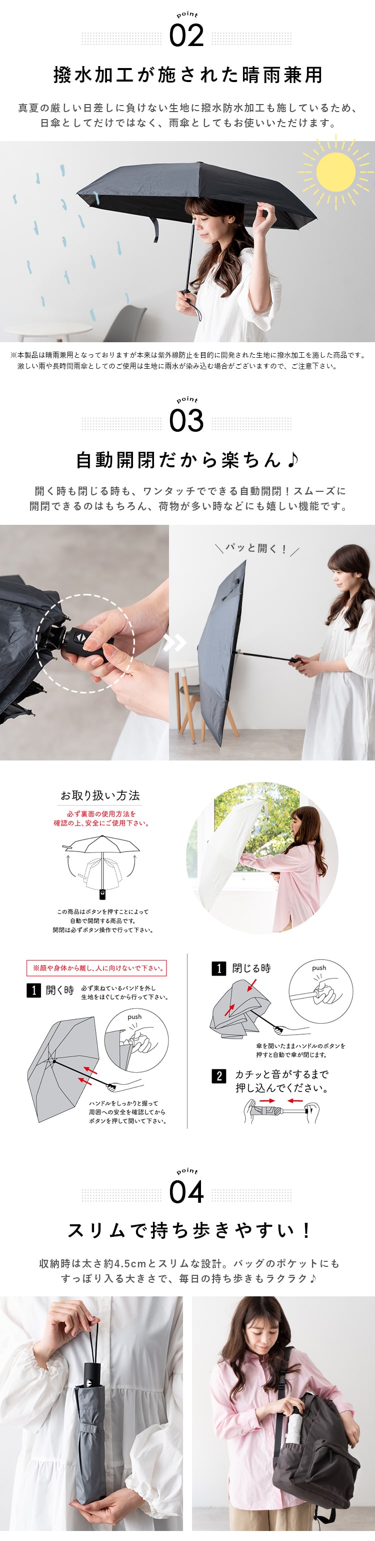ワンタッチで自動開閉!機能的で楽ちんなり畳み傘。