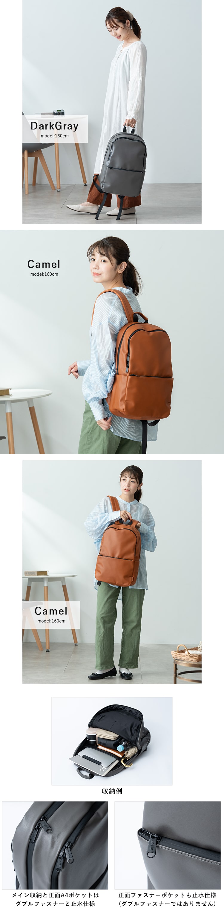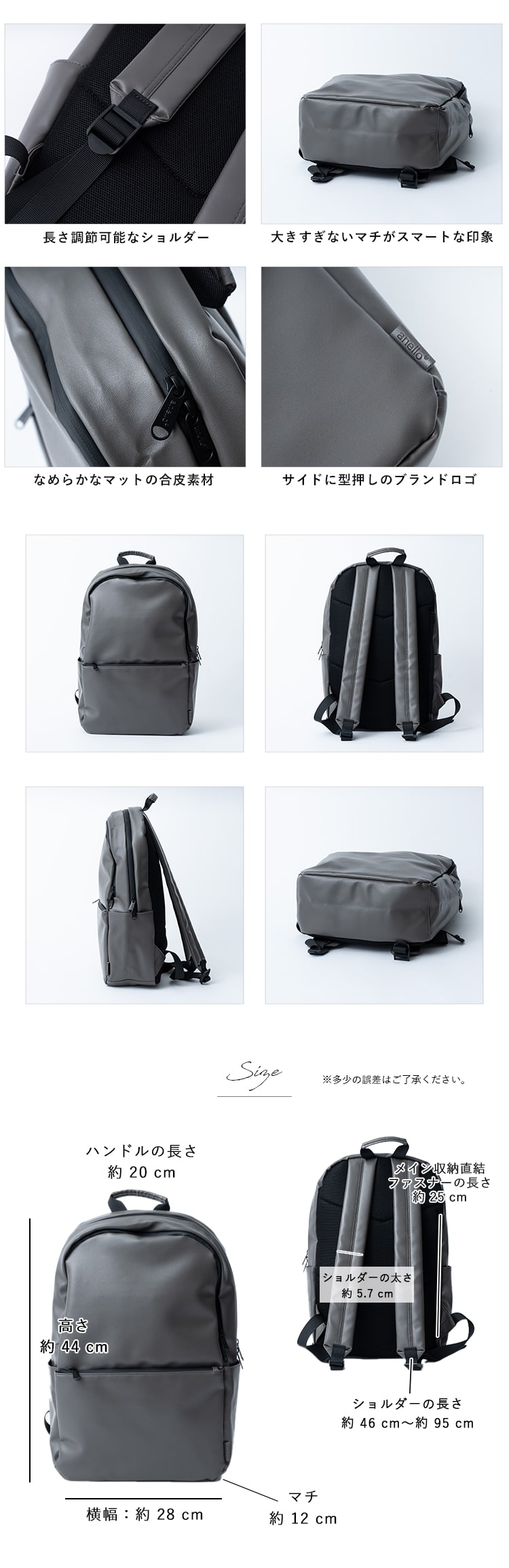 マットな合皮が大人っぽい、洗練されたフォルムのシンプルリュック。