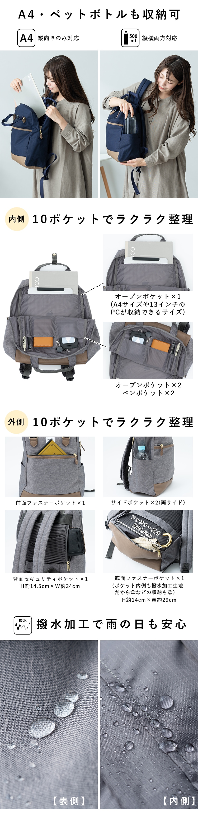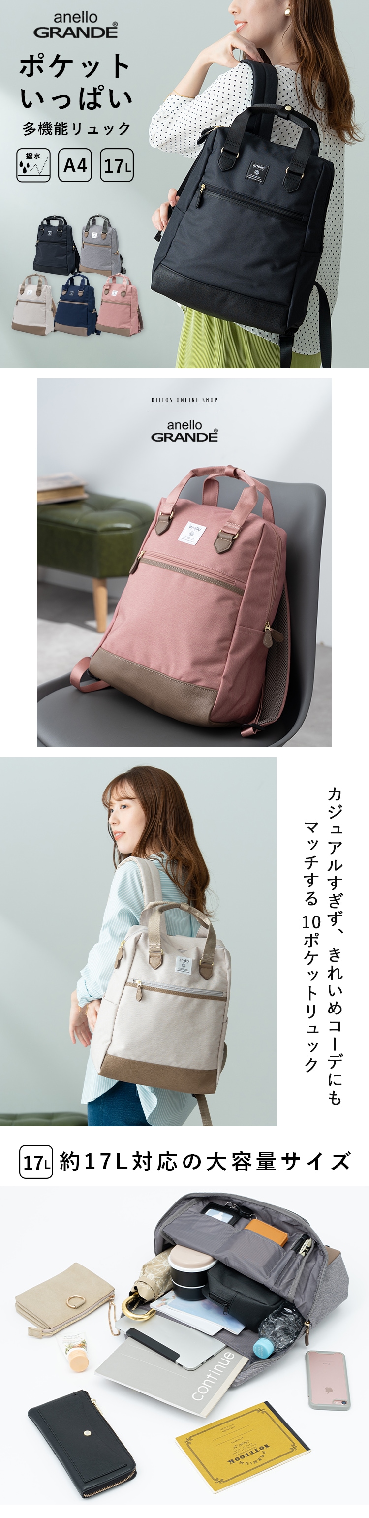 リュック レディース ブランド アネロ anello 大容量 旅行 軽量 通勤 通学 撥水 a4 大きめ 10ポケット おしゃれ 大人 アウトドア ビジネス 背面ポケット 学生 仕事 pc 13インチ トラベル メンズ カジュアル プレゼント ギフト